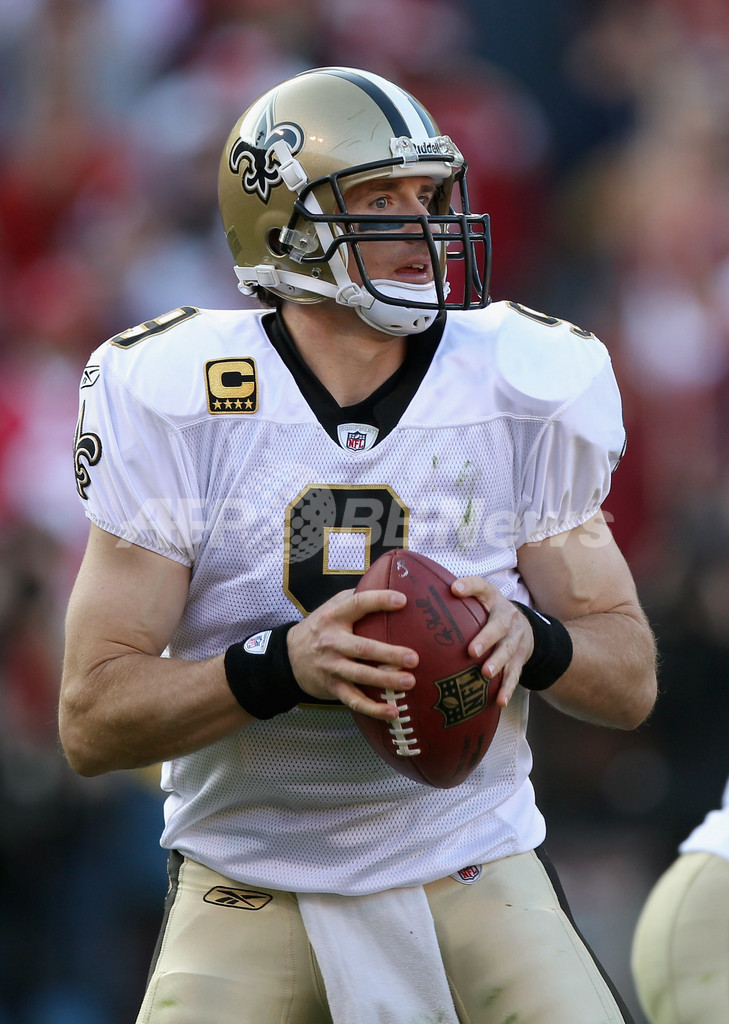 パスコースを探すセインツのQBドリュー・ブリーズ(Drew Brees、2012年1月14日撮影)。(c)AFP/Getty Images/Jed Jacobsohn