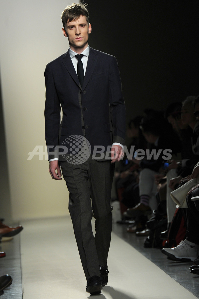 【1月16日 AFP】イタリア・ミラノ市内で14日から17日まで、12/13年秋冬ミラノ・メンズコレクションが開かれている。15日には、トーマス・マイヤー(Tomas Maier)が手がける「ボッテガ・ヴェネタ(Bottega Veneta)」が新作を発表した。(c)AFP