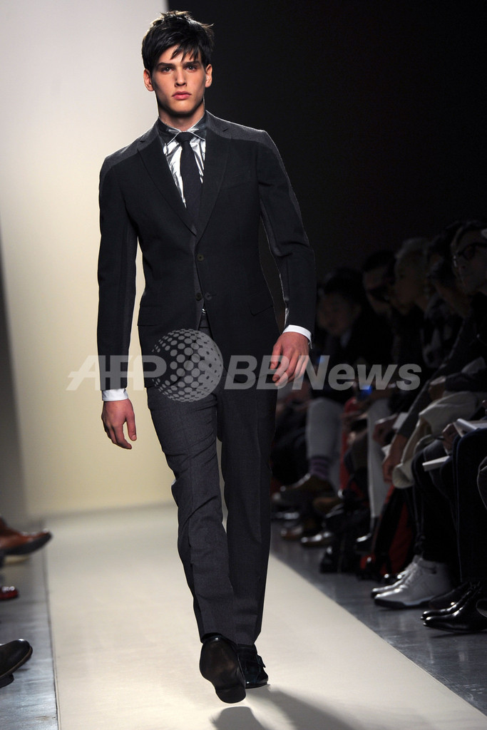 【1月16日 AFP】イタリア・ミラノ市内で14日から17日まで、12/13年秋冬ミラノ・メンズコレクションが開かれている。15日には、トーマス・マイヤー(Tomas Maier)が手がける「ボッテガ・ヴェネタ(Bottega Veneta)」が新作を発表した。(c)AFP
