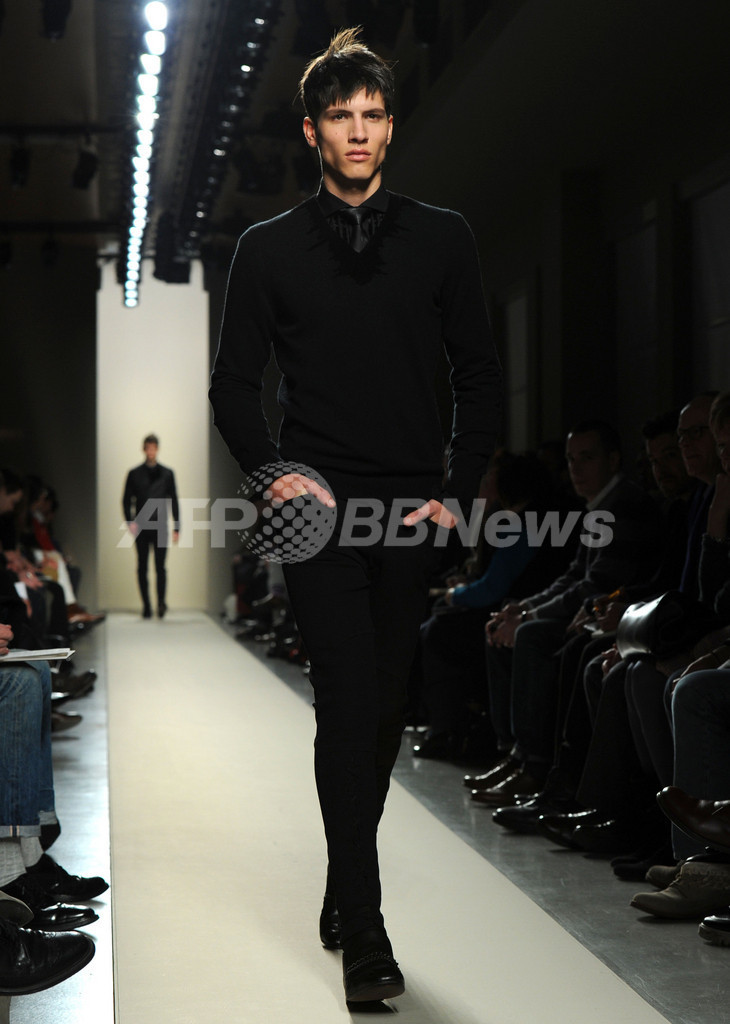 【1月16日 AFP】イタリア・ミラノ市内で14日から17日まで、12/13年秋冬ミラノ・メンズコレクションが開かれている。15日には、トーマス・マイヤー(Tomas Maier)が手がける「ボッテガ・ヴェネタ(Bottega Veneta)」が新作を発表した。(c)AFP
