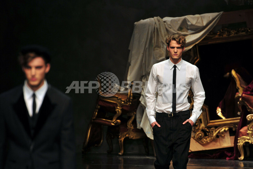 【1月16日 AFP】イタリア・ミラノ市内で14日から17日まで、12/13年秋冬ミラノ・メンズコレクションが開かれている。14日には、ドメニコ・ドルチェ(Domenico Dolce)とステファノ・ガッバーナ(Stefano Gabbana)が手がける「ドルチェ&ガッバーナ(Dolce & Gabbana)」が新作を発表した。(c)AFP