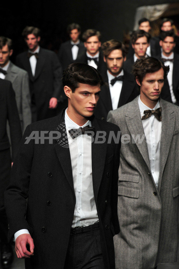 【1月16日 AFP】イタリア・ミラノ市内で14日から17日まで、12/13年秋冬ミラノ・メンズコレクションが開かれている。14日には、ドメニコ・ドルチェ(Domenico Dolce)とステファノ・ガッバーナ(Stefano Gabbana)が手がける「ドルチェ&ガッバーナ(Dolce & Gabbana)」が新作を発表した。(c)AFP