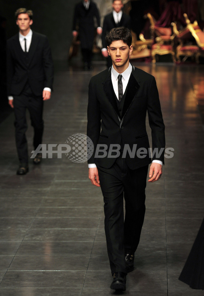 【1月16日 AFP】イタリア・ミラノ市内で14日から17日まで、12/13年秋冬ミラノ・メンズコレクションが開かれている。14日には、ドメニコ・ドルチェ(Domenico Dolce)とステファノ・ガッバーナ(Stefano Gabbana)が手がける「ドルチェ&ガッバーナ(Dolce & Gabbana)」が新作を発表した。(c)AFP
