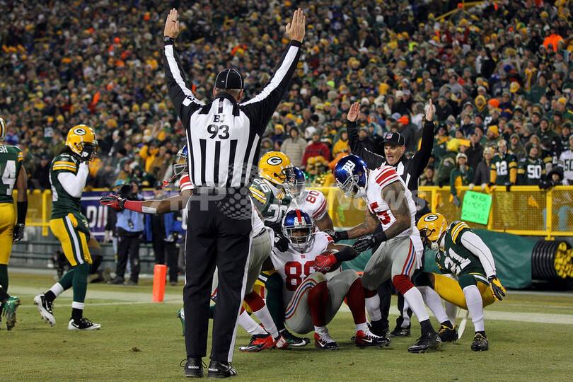 【1月16日 AFP】11NFLプレーオフは15日、カンファレンス準決勝が行われ、レギュラーシーズンでわずか1敗だったグリーンベイ・パッカーズ(Green Bay Packers)を破ったニューヨーク・ジャイアンツ(New York Giants)とボルティモア・レイヴンズ(Baltimore Ravens)がカンファレンス決勝に進出した。