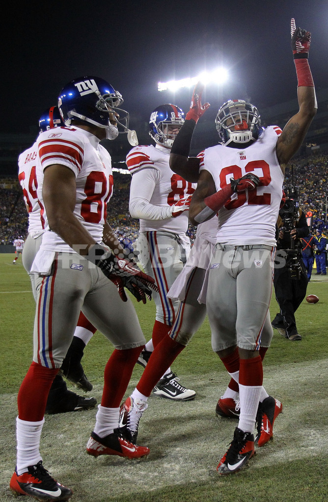 【1月16日 AFP】11NFLプレーオフは15日、カンファレンス準決勝が行われ、レギュラーシーズンでわずか1敗だったグリーンベイ・パッカーズ(Green Bay Packers)を破ったニューヨーク・ジャイアンツ(New York Giants)とボルティモア・レイヴンズ(Baltimore Ravens)がカンファレンス決勝に進出した。
