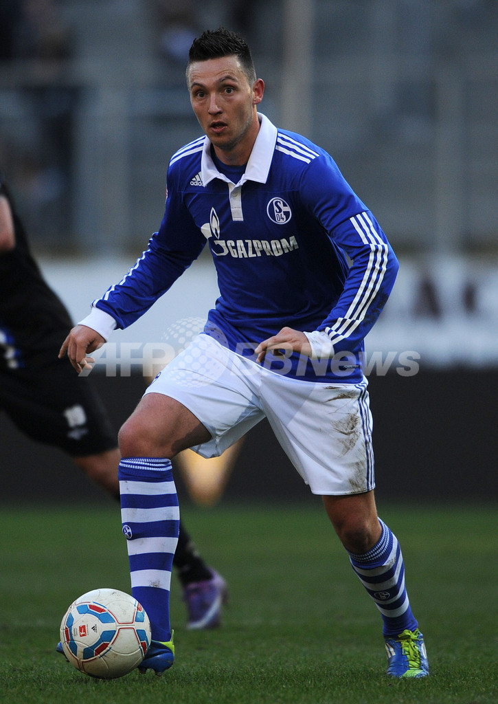 ボールをコントロールするシャルケ04のアレクザンダー・バウムヨハン(Alexander Baumjohann、2012年1月15日撮影)。(c)AFP/PATRIK STOLLARZ