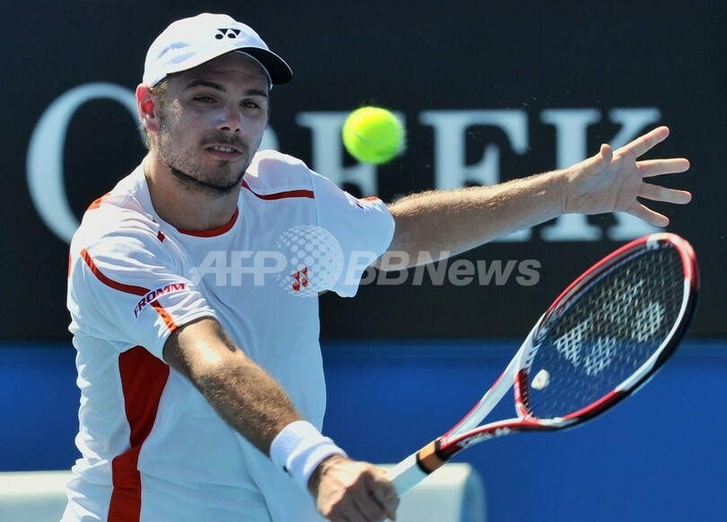 リターンを打つスタニスラス・ワウリンカ(2012年1月16日撮影)。(c)AFP/PAUL CROCK