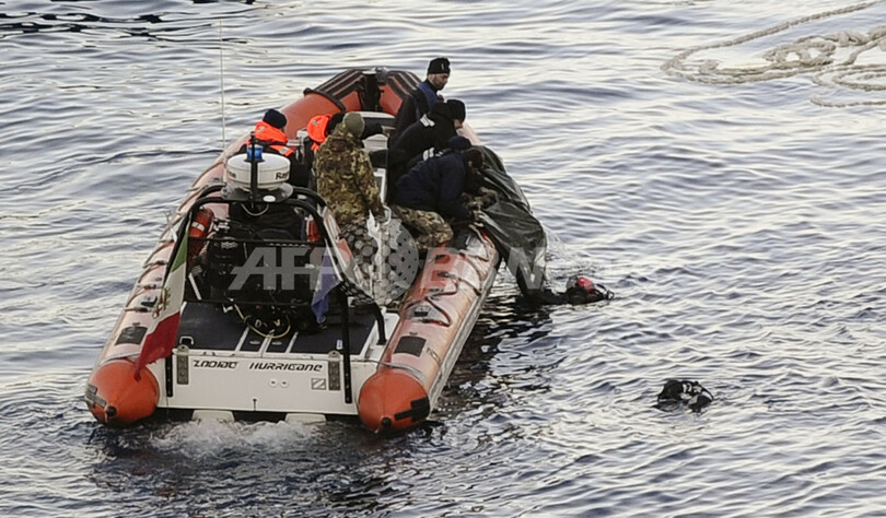 なお、17日の救助活動では、爆薬を使って船体に穴をあける措置がとられ、新たに5人の遺体が発見された。これで、死者数は計11人となった。依然として24人前後が行方不明となっている。(c)AFP/Ljubomir Milasin