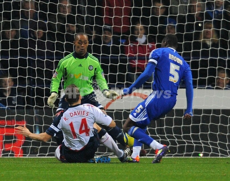 前半1分に先制点を決めるボルトン・ワンダラーズのケヴィン・デイヴィーズ(Kevin Davies、中央下、2012年1月17日撮影)。(c)AFP/ANDREW YATES