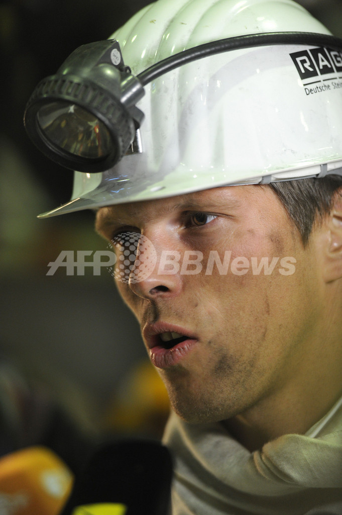 アウグステ・ヴィクトリア炭鉱を見学するシャルケ04のクラース・ヤン・フンテラール(Klaas-Jan Huntelaar、2012年1月16日撮影)。(c)AFP/PATRIK STOLLARZ