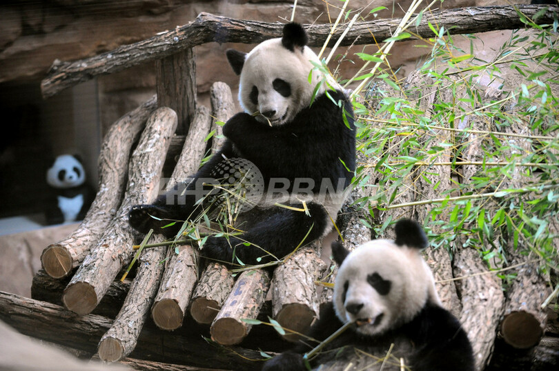 写真はボーバル動物園での「歓歓(Huan Huan)」と「圓仔(Yuan Zi)」(2012年1月17日撮影)。(c)AFP/ALAIN JOCARD