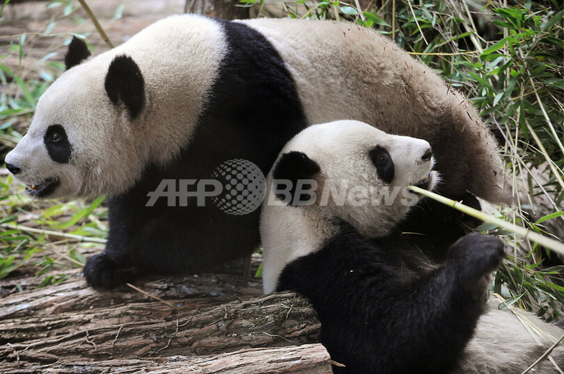 写真はボーバル動物園での「歓歓(Huan Huan)」と「圓仔(Yuan Zi)」(2012年1月17日撮影)。(c)AFP/ALAIN JOCARD