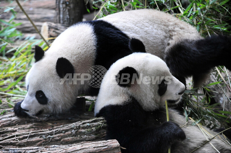 写真はボーバル動物園での「歓歓(Huan Huan)」と「圓仔(Yuan Zi)」(2012年1月17日撮影)。(c)AFP/ALAIN JOCARD