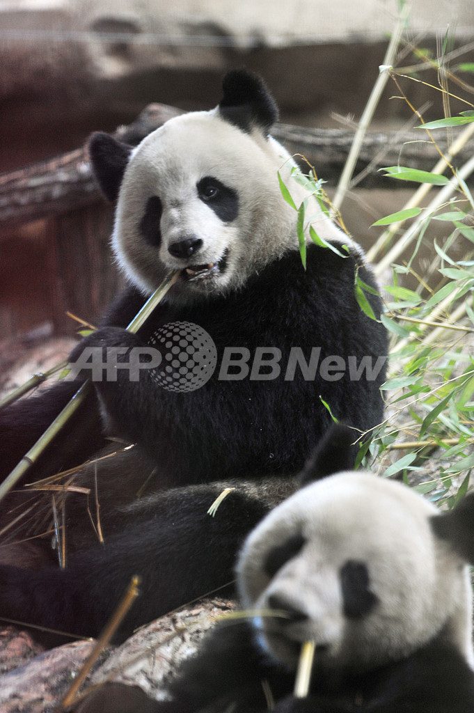 写真はボーバル動物園での「歓歓(Huan Huan、上)」と「圓仔(Yuan Zi、下)」(2012年1月17日撮影)。(c)AFP/ALAIN JOCARD