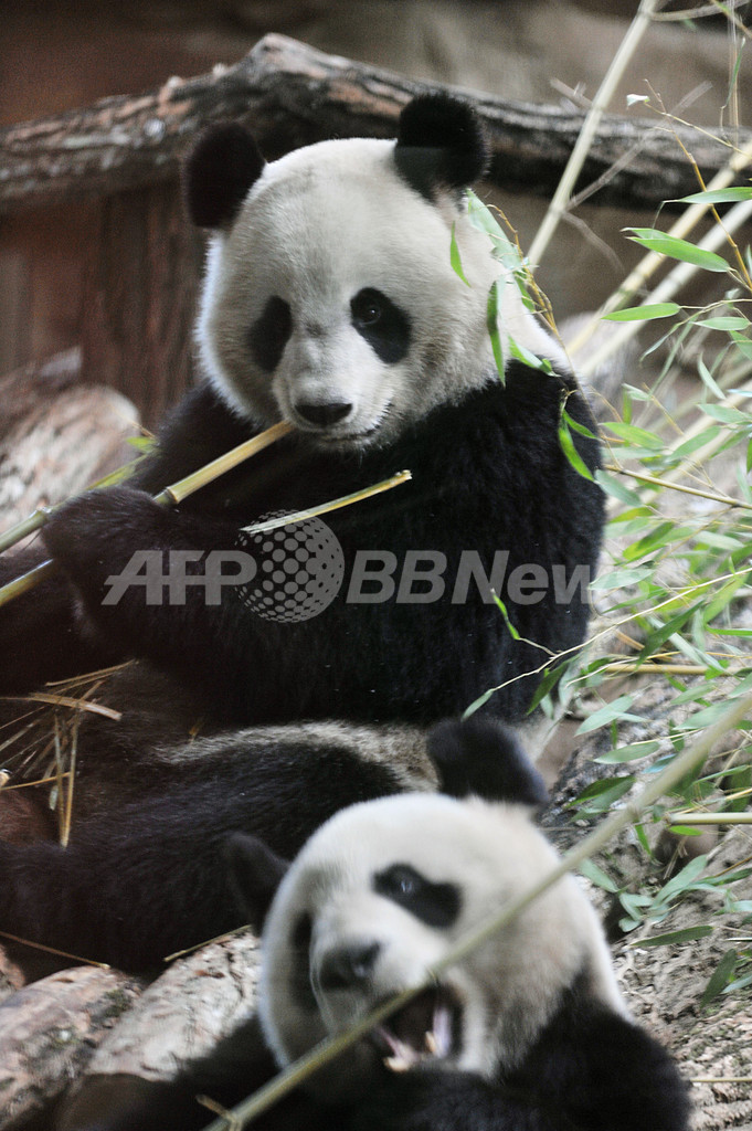 写真はボーバル動物園での「歓歓(Huan Huan、上)」と「圓仔(Yuan Zi、下)」(2012年1月17日撮影)。(c)AFP/ALAIN JOCARD