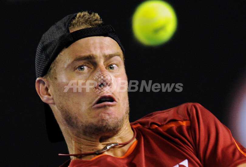 ボールを見つめるレイトン・ヒューイット(2012年1月21日撮影)。(c)AFP/WILLIAM WEST