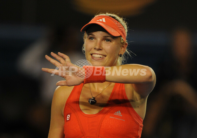 試合に勝利し、歓喜するカロリーネ・ボズニアツキ(2012年1月22日撮影)。(c)AFP/GREG WOOD