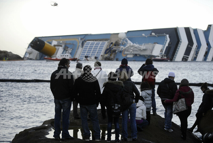 コンコルディア号座礁事故でこれまでに死亡が確認された12人の身元は、乗客がフランス人4人、イタリア人1人、スペイン人1人、乗員ではペルー人ウエーター1人とハンガリー人バイオリニスト1人などとなっている。(c)AFP/Ella Ide