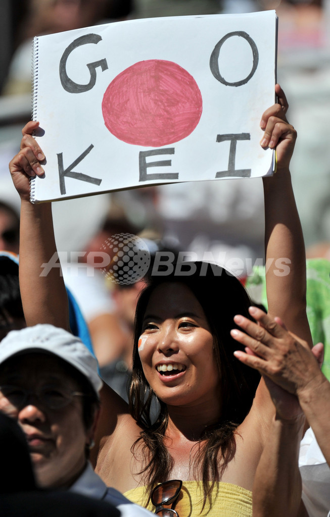 【1月23日 AFP】(記事更新)全豪オープンテニス(Australian Open Tennis Tournament 2012)は23日、男子シングルス4回戦が行われ、大会第24シードの錦織圭(Kei Nishikori、日本)は2-6、6-2、6-1、3-6、6-3で大会第6シードのジョーウィルフリード・ツォンガ(Jo-Wilfried Tsonga、フランス)を下し、準々決勝に進出した。