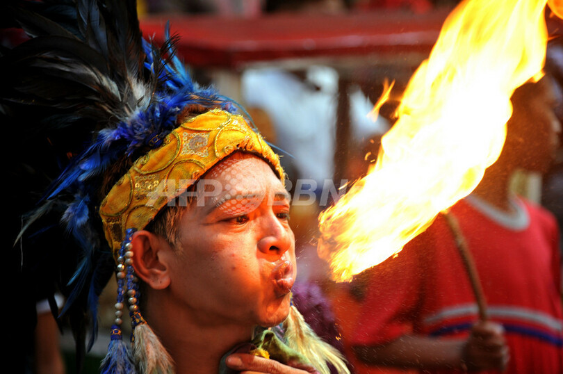ニュース ライフ 春節前日、マニラのチャイナタウンはお祝いムード 2012年1月23日 12:10 発信地:マニラ/フィリピン [ アジア・オセアニア フィリピン ] このニュースをシェア ‹ › ❮ 2/3 ❯ 春節前日、マニラ(Manila)のチャイナタウンに現れた火を噴くパフォーマー(2012年1月22日撮影)。(c)AFP/NOEL CELIS 画像作成中 ! 【1月23日 AFP】春節(旧正月、Lunar New Year)を翌日に控えた22日、フィリピンの首都マニラ(Manila)のチャイナタウンはお祝いムードに包まれ、火を噴くパフォーマーの姿も見られた。(c)AFP ライフ 一覧へ> メディア・報道関係・法人の方向け 写真・動画 購入のお問合せ>