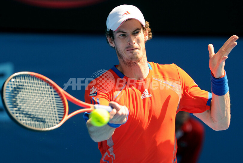 リターンを打つアンディ・マレー(2012年1月25日撮影)。(c)AFP/William WEST