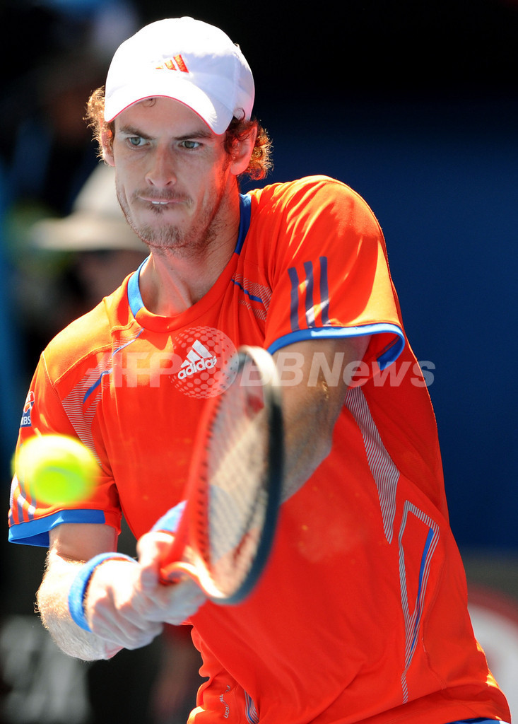 リターンを打つアンディ・マレー(2012年1月25日撮影)。(c)AFP/William WEST