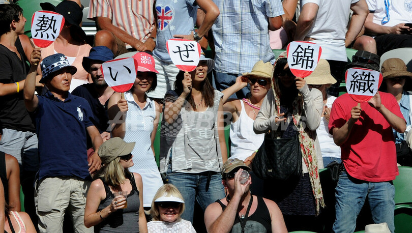 錦織圭に声援を送るファン(2012年1月25日撮影)。(c)AFP/TORSTEN BLACKWOOD