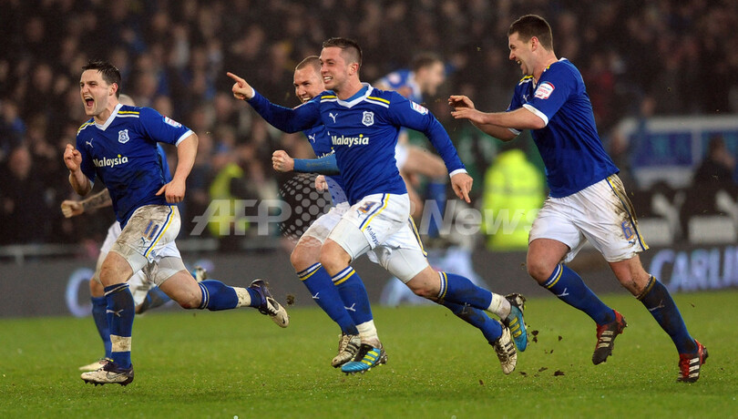決勝進出を決め、歓喜するカーディフ・シティの選手(2012年1月24日撮影)。(c)AFP/PAUL ELLIS