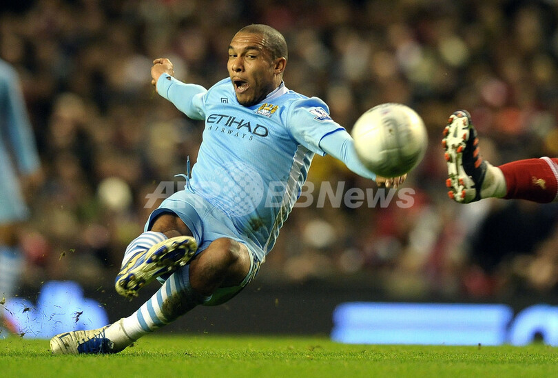 前半31分に先制点を挙げるマンチェスター・シティのナイジェル・デ・ ヨング(Nigel de Jong、2012年1月25日撮影)。(c)AFP/PAUL ELLIS