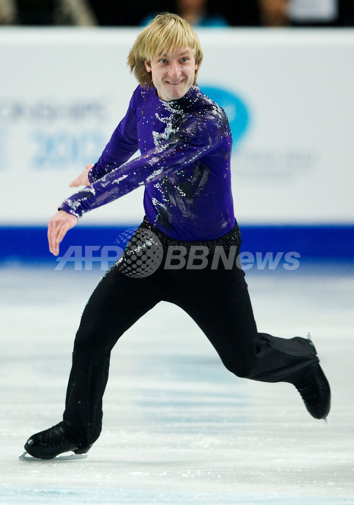84.71点で2位につけたロシアのエフゲニー・プルシェンコ(Evgeni Plushenko、2012年1月26日撮影)。(c)AFP/ANDREW YATES
