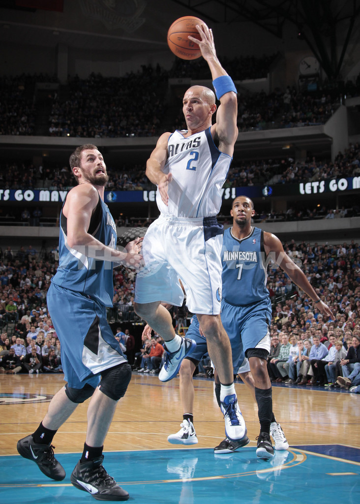 ノールックパスを試みるダラス・マーベリックスのジェイソン・キッド(Jason Kidd、中央、2012年1月2日撮影)。(c)AFP/NBAE/Danny Bollinger