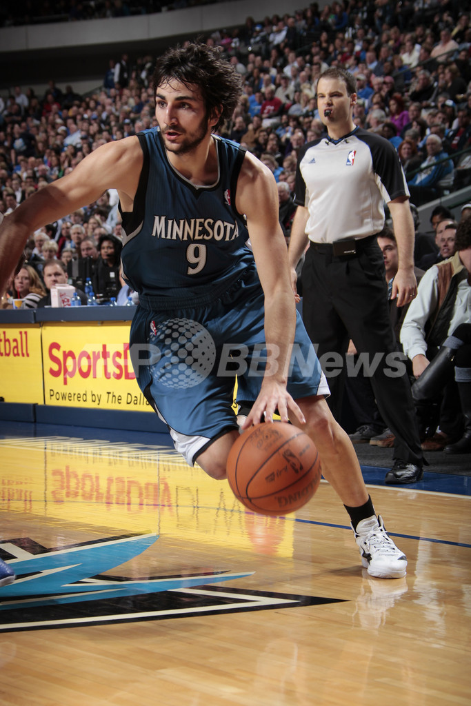 ドライブを仕掛けるミネソタ・ティンバーウルブズのリッキー・ルビオ(Ricky Rubio、2012年1月25日撮影)。(c)AFP/Getty Images/NBAE/Glenn James