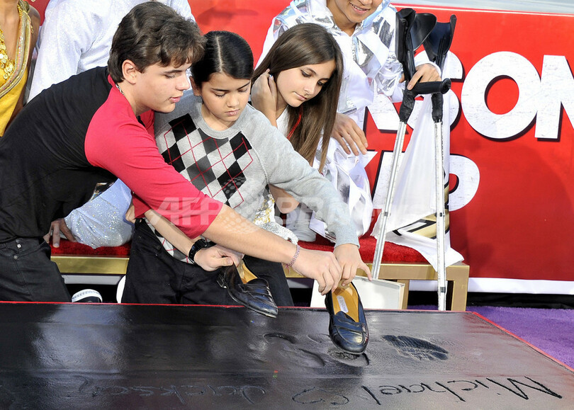 【1月27日 AFP】2009年に急死した米歌手マイケル・ジャクソン(Michael Jackson)さんの手形と足形をハリウッド(Hollywood)のチャイニーズ・シアター(Grauman's Chinese Theatre)に刻む式典が26日開催され、プリンス(Prince)君(14)、パリス(Paris)ちゃん(13)、プリンス・マイケル(Prince Michael)君(9)の3人の子どもたちが出席した。