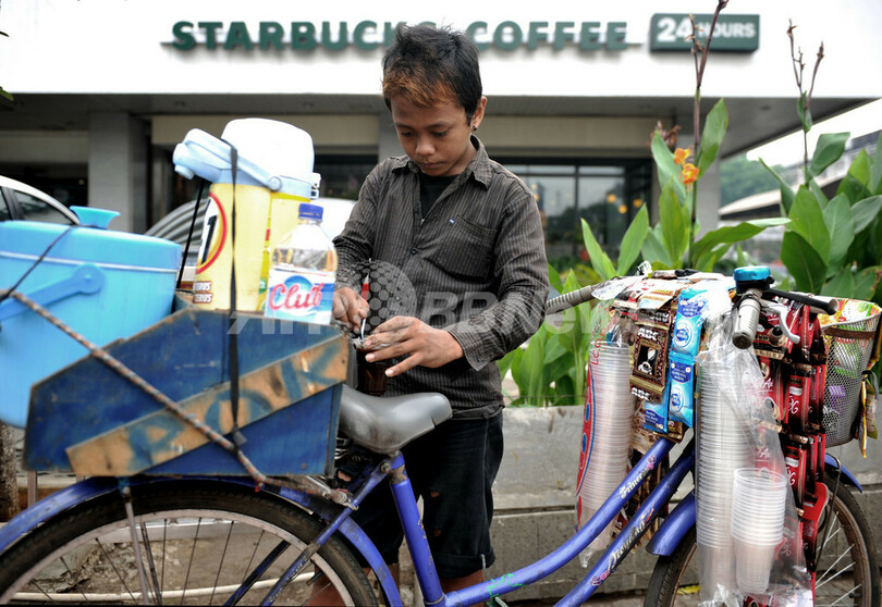 【1月27日AFP】渋滞と喧騒にあふれるインドネシアの街角――裕福な人々がエアコンの効いた米コーヒーチェーン大手スターバックス(Starbucks)店内でラテをすする一方、貧しい人々は「スターバイクス(Starbikes)」に駆け寄る。