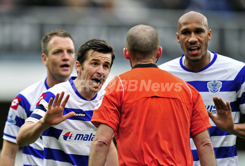 PKの判定に抗議するQPRの選手(2011年10月20日撮影)。(c)AFP/GLYN KIRK