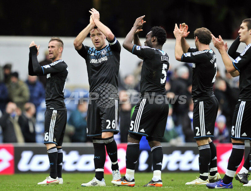 試合後、チームメイトとともに観衆の声援に応えるチェルシーのジョン・テリー(John Terry、2011年10月20日撮影)。(c)AFP/GLYN KIRK