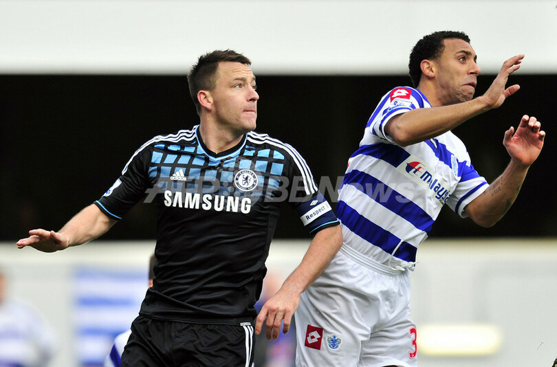 QPRのアントン・ファーディナンド (Anton Ferdinand)と競るチェルシーのジョン・テリー(John Terry、2011年10月20日撮影)。(c)AFP/GLYN KIRK