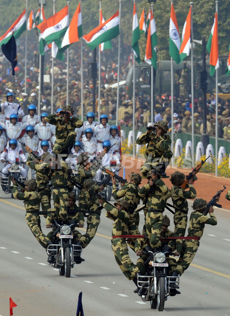 ニュース 政治・経済 インド共和国記念日の軍事パレード、アクロバットも 2012年1月29日 14:53 発信地:ニューデリー/インド [ アジア・オセアニア インド ] このニュースをシェア ‹ › ❮ 8/21 ❯ インドの首都ニューデリー(New Delhi)で26日、共和国記念日を祝う軍事パレードが開かれた。記念日は今年で63回目。タイのインラック・シナワット(Yingluck Shinawatra)首相が主賓として参加した。写真はオートバイでのアクロバットを披露する国境警備隊(2012年1月26日撮影)。(c)AFP/RAVEENDRAN 画像作成中 ! 【1月29日 AFP】インドの首都ニューデリー(New Delhi)で26日、共和国記念日を祝う軍事パレードが開かれた。記念日は今年で63回目。タイのインラック・シナワット(Yingluck Shinawatra)首相が主賓として参加した。(c)AFP 政治・経済 一覧へ> メディア・報道関係・法人の方向け 写真・動画 購入のお問合せ>