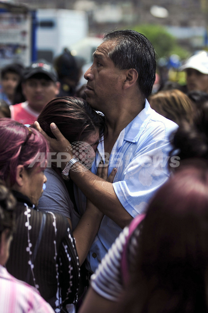 遺体は施設の外に並べて安置され、一帯では身元確認に訪れた親族らが泣き崩れた。