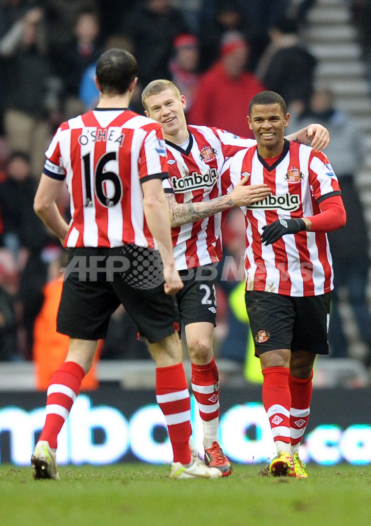 しかし後半に入るとサンダーランドは、ジェームス・マクリーン(James McClean)のクロスからフレイザー・キャンベル(Fraizer Campbell)がゴールを決めて同点に追いついた。(c)AFP