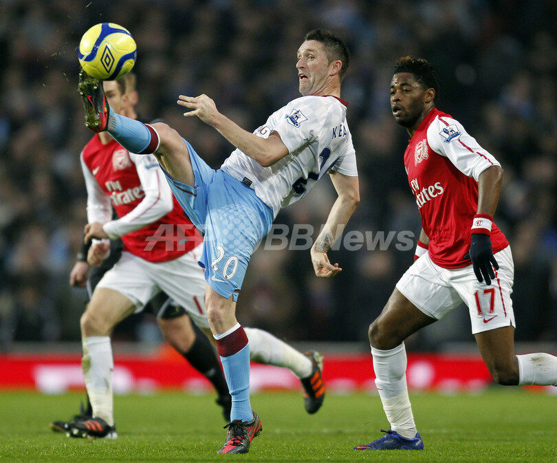 ボールをコントロールするアストン・ビラのロビー・キーン(Robbie Keane、2012年1月29日撮影)。(c)AFP/IAN KINGTON
