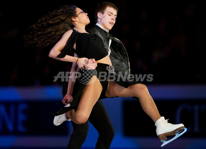 演技に臨むロシアのエレーナ・イリニフ(Elena Ilinykh)/ニキータ・カツァラポフ(Nikita Katsalapov)組(2012年1月29日撮影)。(c)AFP/LEON NEAL