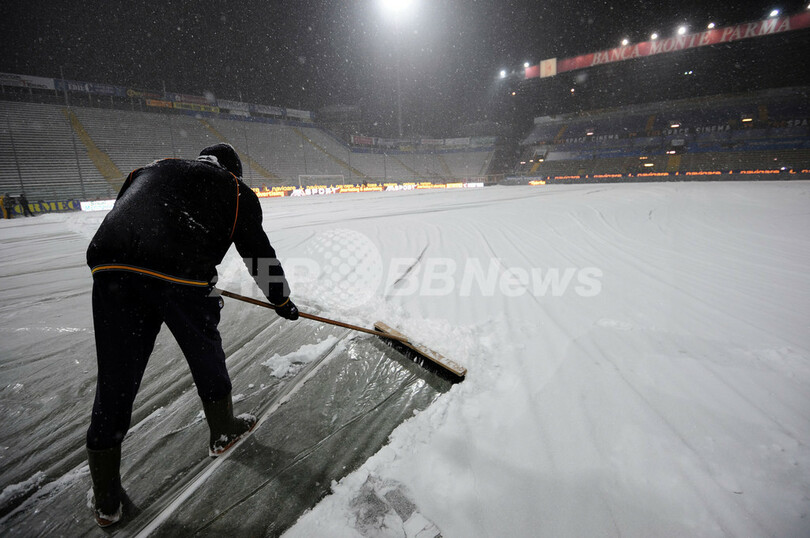 パルマのスポーツディレクターを務めるピエトロ・レオナルディ(Pietro Leonardi)氏は、「午後8時(現地時間、以下同じ)に決定を受諾した。プレーできないわけではなかったんだ。午後6時の時点ではプレーできるだろうと思っていたが、そう思うには時期尚早だったようだ。ピッチの除雪を始めてから、厳しいことが分かったんだ」とコメントしている。(c)AFP