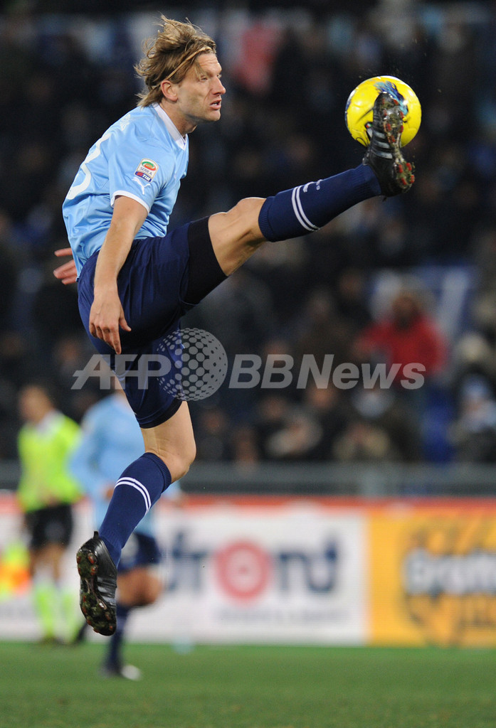ボールをコントロールするラツィオのマリウス・スタンケヴィチウス(Marius Stankevicius、2012年2月1日撮影)。(c)AFP/GABRIEL BOUYS