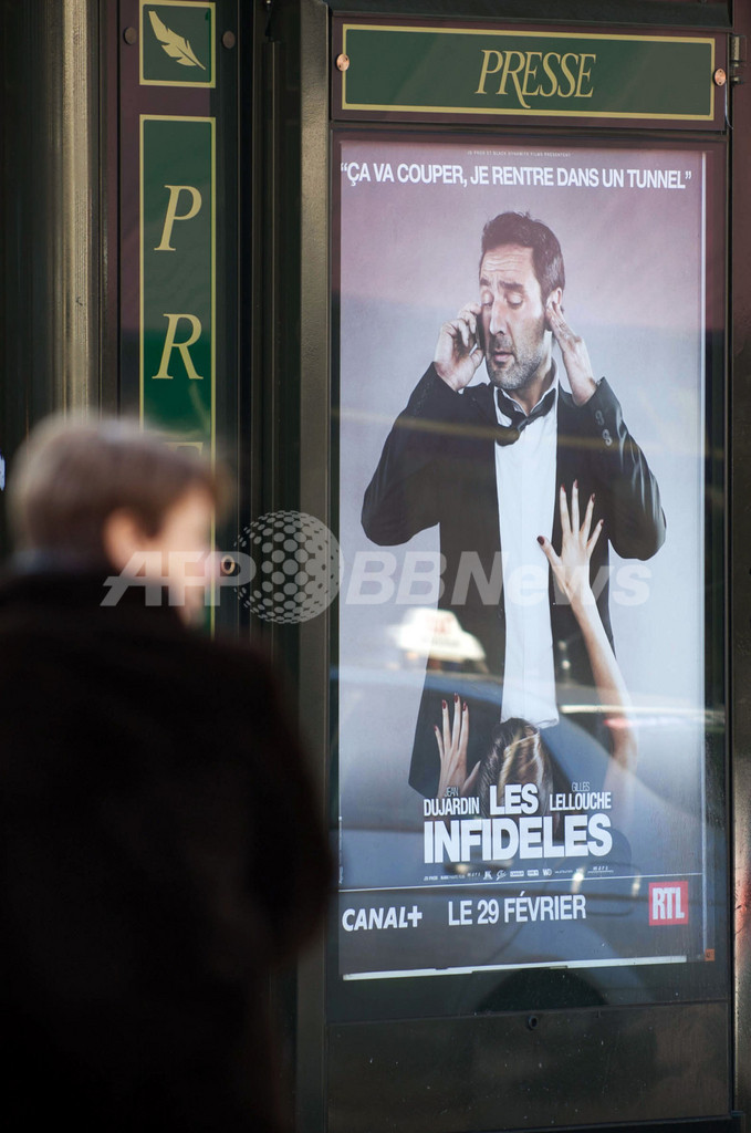 問題となっているのは、デュジャルダンを含む複数の監督が男性の浮気をテーマに撮った短編コメディーのオムニバス映画『Les Infideles(The Player)』のポスターで、スタイリッシュなスーツを着たデュジャルダンがハイヒールを履いただけの女性の足の間から顔を出しているというもの。ポスター上部には「これから打ち合わせに入るんだ」と書かれている。同作品には、『アーティスト』のミシェル・アザナヴィシウス(Michel Hazanavicius)監督も参加している。