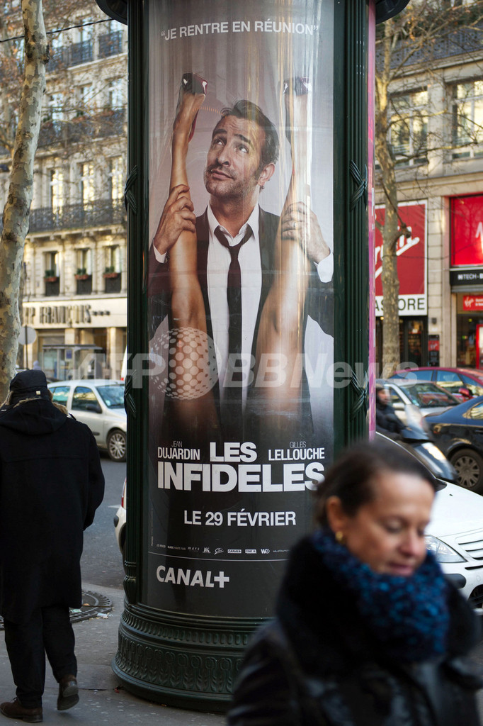問題となっているのは、デュジャルダンを含む複数の監督が男性の浮気をテーマに撮った短編コメディーのオムニバス映画『Les Infideles(The Player)』のポスターで、スタイリッシュなスーツを着たデュジャルダンがハイヒールを履いただけの女性の足の間から顔を出しているというもの。ポスター上部には「これから打ち合わせに入るんだ」と書かれている。同作品には、『アーティスト』のミシェル・アザナヴィシウス(Michel Hazanavicius)監督も参加している。