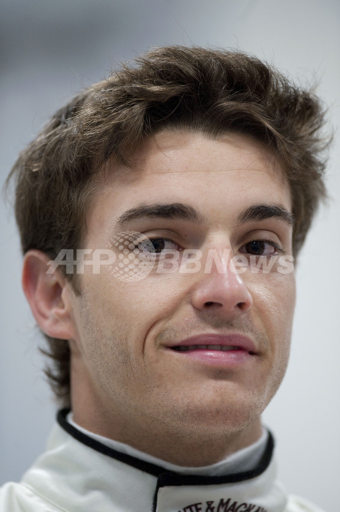 新車発表会見に出席したフォースインディアのジュール・ビアンキ(Jules Bianchi、2012年2月3日撮影)。(c)AFP/BEN STANSALL