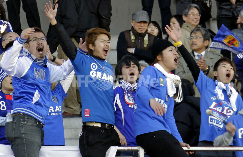 声援を送る日本のサポーター(2012年2月5日撮影)。(c)AFP/KHALIL MAZRAAWI