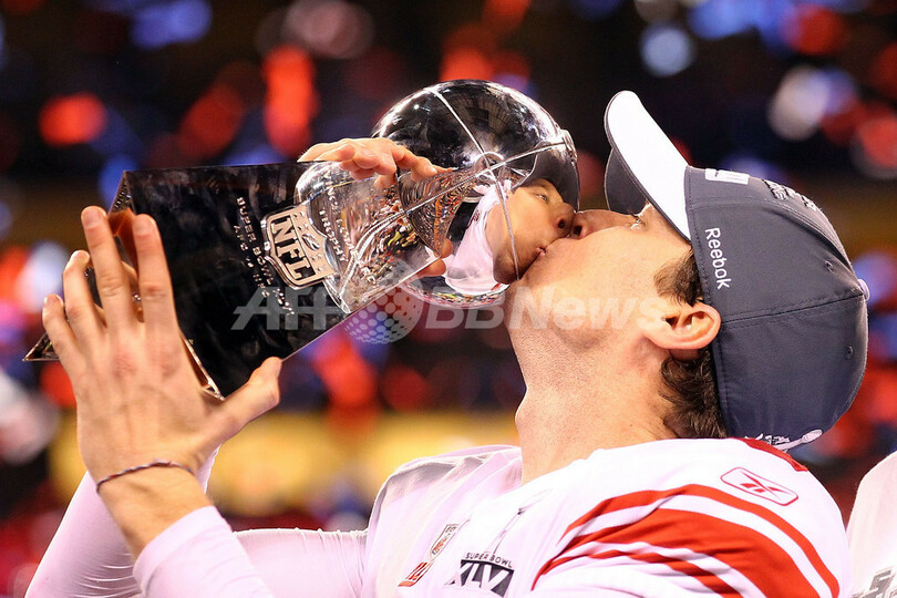 この試合のMVP(最優秀選手賞)には、タッチダウンパス1本を含む30本のパスを成功させ、296ヤードを獲得したジャイアンツのマニングが選ばれた。(c)AFP/Jim Slater