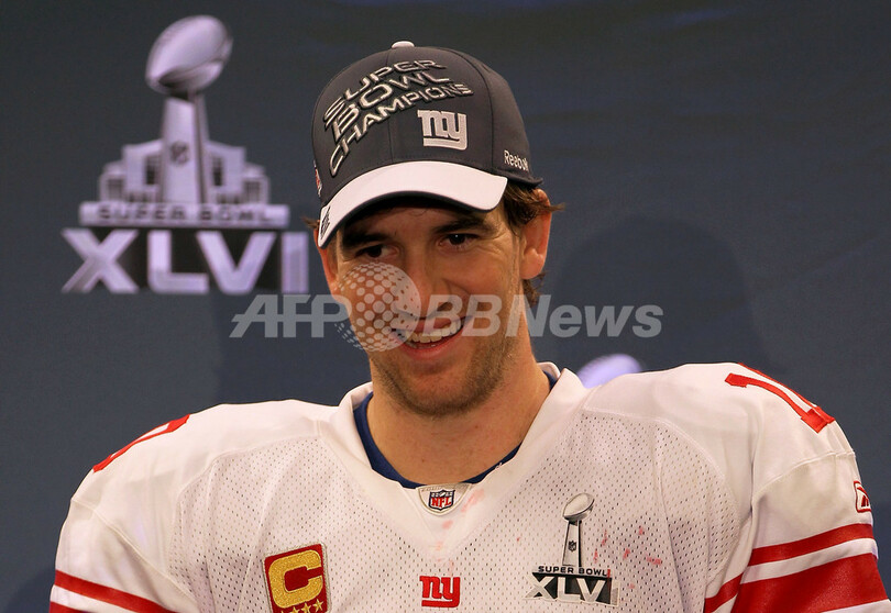 この試合のMVP(最優秀選手賞)には、タッチダウンパス1本を含む30本のパスを成功させ、296ヤードを獲得したジャイアンツのマニングが選ばれた。(c)AFP/Jim Slater